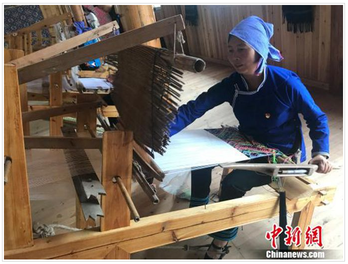 聽聞姐姐在這里織錦每月可拿到3000多元的收入,今年7月,此前在廣東務工的文坡村二組村民龍練霞干起了這份家門口的工作,再也不想外出了?!凹确奖阏疹櫦胰?,又可以抽空干點農事?!苯衲?0多歲的龍練霞說。和她一樣,看到侗錦的銷路慢慢打開了,村里許多在外務工的年輕人也紛紛返鄉(xiāng),拾起祖輩們的老手藝。