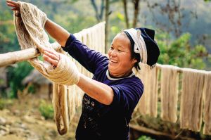 白褲瑤婦女紡紗織布做衣,新買的棉紗要經(jīng)過蒸煮、漂洗、涼曬才可織布,而年輕一代的白褲瑤婦女大多直接到市場(chǎng)上買白布。2007年10月拍攝。