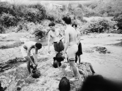 有一天,我在通什(今五指山市)的一條河邊,看見有幾個(gè)黎族人抱著大葫蘆過河。我趕緊拿出相機(jī),在河邊的大石頭間跳來跳去追拍。沒想到一不留神就跳空了,重重地摔在石頭上,造成了骨裂,當(dāng)時(shí)就不能動(dòng)彈了,在醫(yī)院里躺了好長一段時(shí)間。