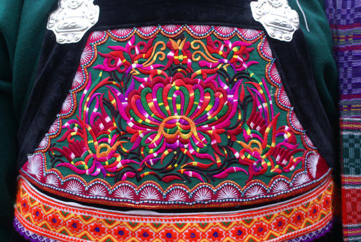水族水家布水家布是主要居住在云貴高原東南部的曲嶺山脈以南、都柳江和龍江上游的水族居民使用的布料。為防毒蛇扎花邊大多數(shù)已婚婦女的衣服都有花邊。傳說很早以前,水族人民居住的地方山高林密、雜草叢生、毒蛇為患。一個名叫秀的水族姑娘,用彩色絲線在衣領(lǐng)、袖口、襟邊、褲腳上繡上一條條紅紅綠綠的花邊,又在鞋上繡上一些花草。她穿上這身衣褲和鞋子,獨自去深山密林中砍柴,果然毒蛇見她就逃走了。此后,水族婦女服裝繡花邊的習(xí)俗就逐漸傳承下來。