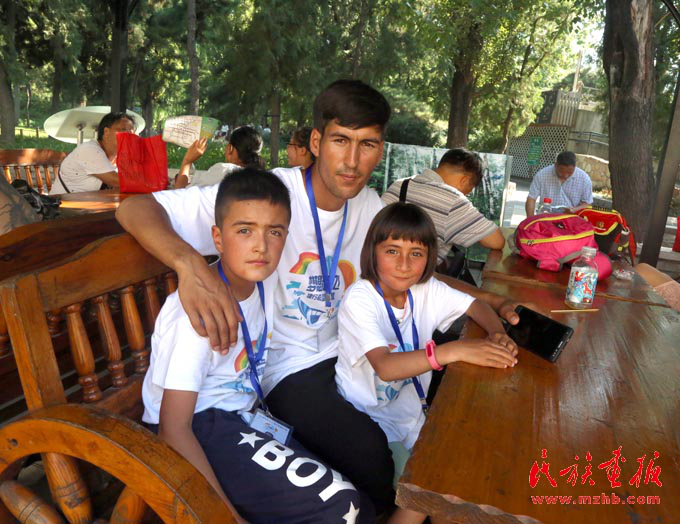 在全國(guó)各地的支援下,塔吉克族學(xué)生和老師有機(jī)會(huì)走出大山,出外看看,這是師生三人在北京(娘吉加 攝影)