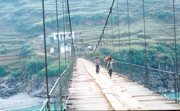 怒江大峽谷及其兩岸的碧羅雪山和高黎貢山層巒疊嶂,危巖聳立,懸崖陡峭。谷中水流湍急,洶涌澎湃。自古以來(lái),這里的交通就十分不便,正所謂“巖羊無(wú)路走,猴子也發(fā)愁”。整個(gè)怒江只有幾處水勢(shì)稍緩的渡口可以用木船擺渡,除此而外,其它地方既無(wú)法架橋,又不能涉渡。兩岸的怒族人民只有依靠溜索這種古老的渡江工具往來(lái)飛渡,保持著彼此間的交往與聯(lián)系。