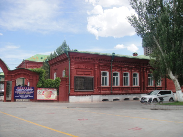 紅樓,二十世紀(jì)初,俄國(guó)塔塔爾族商人建造的一座鐵銹紅色俄式建筑,綠色的屋頂與白木質(zhì)的窗欞,形成強(qiáng)烈對(duì)比,歐式風(fēng)情的浮雕裝飾、高大氣勢(shì)的房屋,都顯示著當(dāng)年的豪華、氣派和時(shí)尚。2006年國(guó)家列為重點(diǎn)文物保護(hù)單位,現(xiàn)在是塔城地區(qū)博物館。