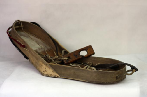 搖籃是鄂倫春族的傳統(tǒng)育嬰工具(如圖,吳雅芝供圖)。游獵時(shí)期居無定所,騎馬游動(dòng)的時(shí)候母親把搖籃背在背上,孩子餓了,只需把搖籃轉(zhuǎn)到胸前就可以喂奶,不必下馬。有人在搖籃頭頂部位掛三個(gè)束紅腰帶的黑布小人,作為孩子的護(hù)身符,據(jù)說能保佑孩子健康成長。也有人在搖籃頭部兩側(cè)掛木刻的小老鼠和小鳥,預(yù)示孩子像小老鼠一樣伶俐機(jī)智,像小鳥一樣展翅飛翔。