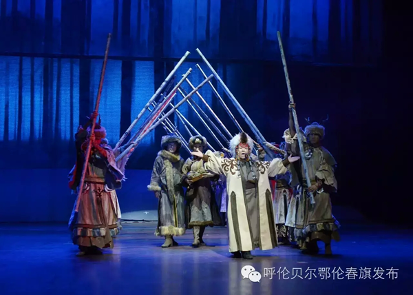 《勇敢的鄂倫春》,由烏蘭托嘎?lián)嗡囆g(shù)總監(jiān),塞納為編劇,三虎、丹德?tīng)枺ǘ砹_斯)、吳莽三人出任總導(dǎo)演;全體演職人員63人,由鄂倫春自治旗烏蘭牧騎專(zhuān)業(yè)人員和15名群眾演員組成,其中鄂倫春族藝術(shù)家曲云、白娟為國(guó)家一級(jí)演員,鄂倫春族群眾演員來(lái)自獵民村與相關(guān)城鎮(zhèn),演員隊(duì)伍中年齡最大的71歲,最小的7歲。演出團(tuán)隊(duì)中鄂倫春族演員占到了接近一半?!队赂业亩鮽惔骸芬远鮽惔好褡濯?dú)有的狩獵文化為主線,詩(shī)意地講述了狩獵生活的全過(guò)程,生動(dòng)鮮活地展示了鄂倫春民族勇敢、細(xì)膩的民族精神和性格特征。該劇還采用了高于原生態(tài)表現(xiàn)手段的唯美手法,將古樸的民族傳統(tǒng)文化與現(xiàn)代藝術(shù)元素巧妙地結(jié)合在一起,既尊重了民風(fēng)民俗,又符合當(dāng)代人的欣賞趨向,煥發(fā)著動(dòng)人心魂的強(qiáng)大魅力。