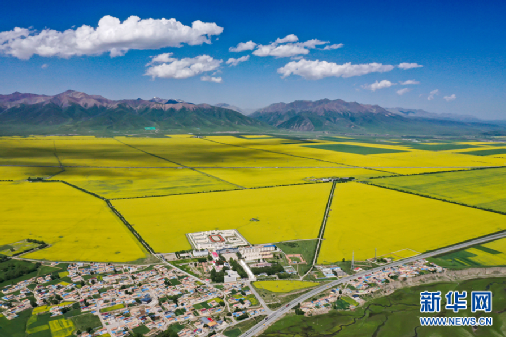 航拍門源縣油菜花海。新華網(wǎng) 宋忠勇 攝