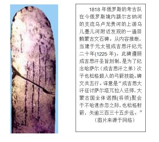 在成吉思汗叱咤風云的時代,中國北方與宋王朝并立先后存在過西夏、遼、金、蒙古等少數(shù)民族政權(quán)。這些政權(quán)的主體民族,西夏國的黨項、遼國的契丹、金國的女真、蒙古國的蒙古,都有本民族語言,最初都沒有本民族文字。建立政權(quán)后,為了適應(yīng)政治和文化發(fā)展的需要,他們有的創(chuàng)立了本民族文字,如西夏文、契丹字、女真字等等?;佞X西遷之前,與蒙古共同生活在蒙古高原,他們都是游牧民族,經(jīng)濟文化與許多相似性,語言上同屬阿爾泰語系,分屬蒙古語族和突厥語族,因此蒙古語與維吾爾語的一些日常用語和詞匯是相同或相近的。如黑(哈喇)、黃(霞喇)、金(阿拉泰)在蒙古語與維吾爾語中發(fā)言是一樣的。成吉思汗命塔塔統(tǒng)阿用回鶻字母創(chuàng)建蒙古文字,就是在這樣的時代背景和回鶻、蒙古的文化聯(lián)系上產(chǎn)生的?,F(xiàn)存用回鶻式蒙古文寫成的文獻中,最早的是1225年的《也松格碑》(成吉思汗石碑)。