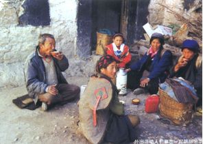 外出活動(dòng)人們聚在一起喝酥油茶