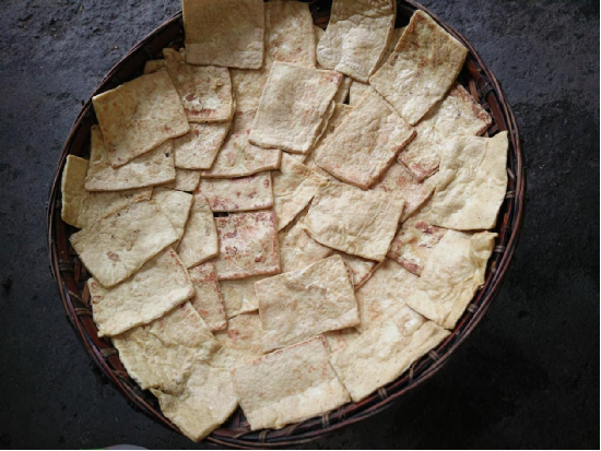 鍋烙豆腐:沿山鍋烙豆腐是精選上好的黃豆作原料,通過純手工制作成豆腐,切成方塊,用草木灰撒在上面,自然發(fā)酵兩天,再用清水洗凈,切成小塊狀,放入鐵鍋烙黃,沿山鎮(zhèn)以丁家制作的鍋烙豆腐最為有名。到沿山旅游玩耍的客人都會品嘗這一美食,口感外酥里嫩,即可煮食也可干炒或涼拌。