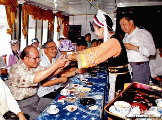 白族熱情好客,先客后主是白族待客的禮節(jié)。家中來了客人,以酒、茶相待。著名的“三道茶”就是白族的待客禮。但白族人倒茶一般只倒半杯,倒酒則需滿杯,他們認(rèn)為“酒滿敬人,茶滿欺人”。受到白族人熱情的款待,應(yīng)說聲“挪衛(wèi)你(謝謝)”來表示你的謝意和感激之情。
