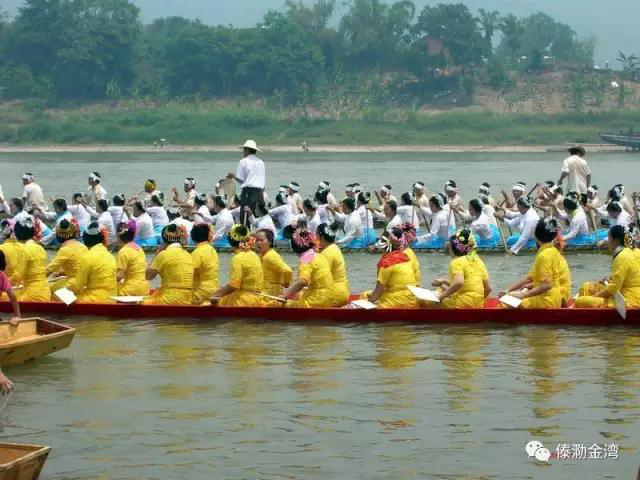 每年的潑水節(jié),西雙版納傣族都要舉行橫渡瀾滄江的賽龍舟活動。一般在潑水節(jié)的第一天舉行。比賽時,江上停泊著披綠掛彩的龍船,船上坐著數(shù)十名精壯的水手,船中間站立1人擊鑼指揮,號令一響,整裝待發(fā)的龍船像箭一般往前飛去,在規(guī)定的范圍內(nèi),哪一隊先到達目的地為勝。