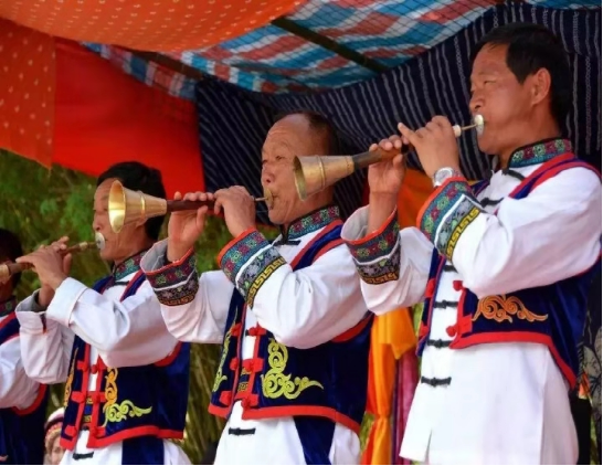 洱源民間有“不吹嗩吶不為喜”的說法,“松鶴人活要吹嗩吶,死也要吹嗩吶,無論悲喜都要吹嗩吶”。
