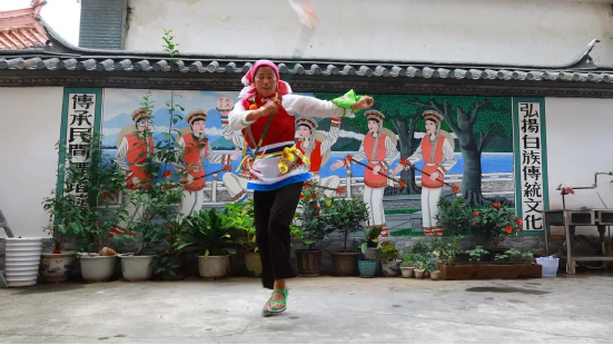 傳統(tǒng)文化時(shí)時(shí)學(xué),白族舞蹈代代傳。小小的霸王鞭看似簡(jiǎn)單,里面卻包含了白族人民田間勞作的智慧。用自己的努力,言傳身教地教授霸王鞭,這愚公移山般的精神也是傳承人的智慧?!敖裉煜挛?點(diǎn),我還要去江尾一趟,教他們的繞三靈團(tuán)隊(duì)跳霸王鞭”,何松康說。