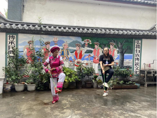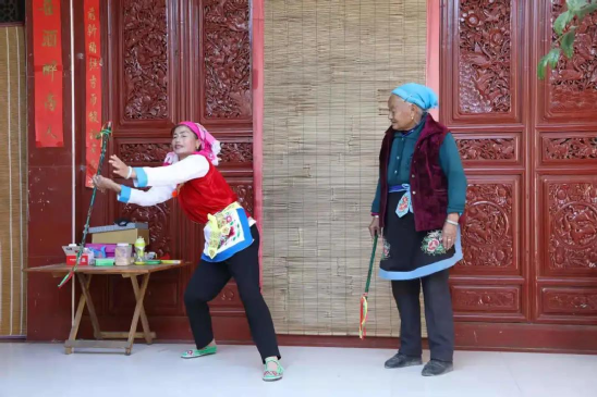 何松康,白族霸王鞭州級(jí)代表性傳承人,也是白族霸王鞭傳習(xí)所的負(fù)責(zé)人,傳習(xí)所就建在她們家一樓的堂屋里。
