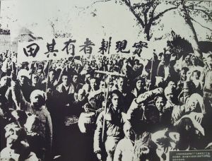 冀中農(nóng)民舉行擁護(hù)土地改革運(yùn)動(dòng)大會(huì)(翻拍于西柏坡紀(jì)念館)。 新華社記者 朱旭東攝