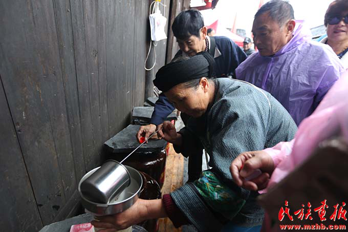 村民自釀的苗家酒深受游客喜歡(滕俊 攝影)