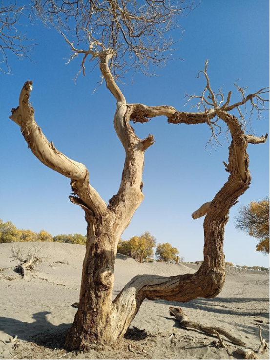 胡楊,又稱胡桐、英雄樹、異葉胡楊、異葉楊、水桐、三葉樹,是生長在沙漠中的樹種,它耐寒、耐旱、耐鹽堿、抗風(fēng)沙,有很強(qiáng)的生命力。