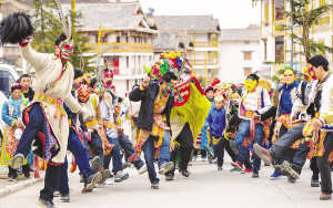 每年農(nóng)歷正月初九,當(dāng)?shù)夭刈逋家e行慶?;顒?dòng),迎接萬(wàn)物萌生,慶賀去年豐收,表達(dá)對(duì)天的敬仰。今年的慶?;顒?dòng)與往年不同,作為蘆山地震災(zāi)區(qū),當(dāng)?shù)夭刈逋趹c祝傳統(tǒng)的“上九節(jié)”時(shí),也寓意要用歡樂(lè)、感恩、奮進(jìn)的精神狀態(tài)投入到恢復(fù)重建中。
