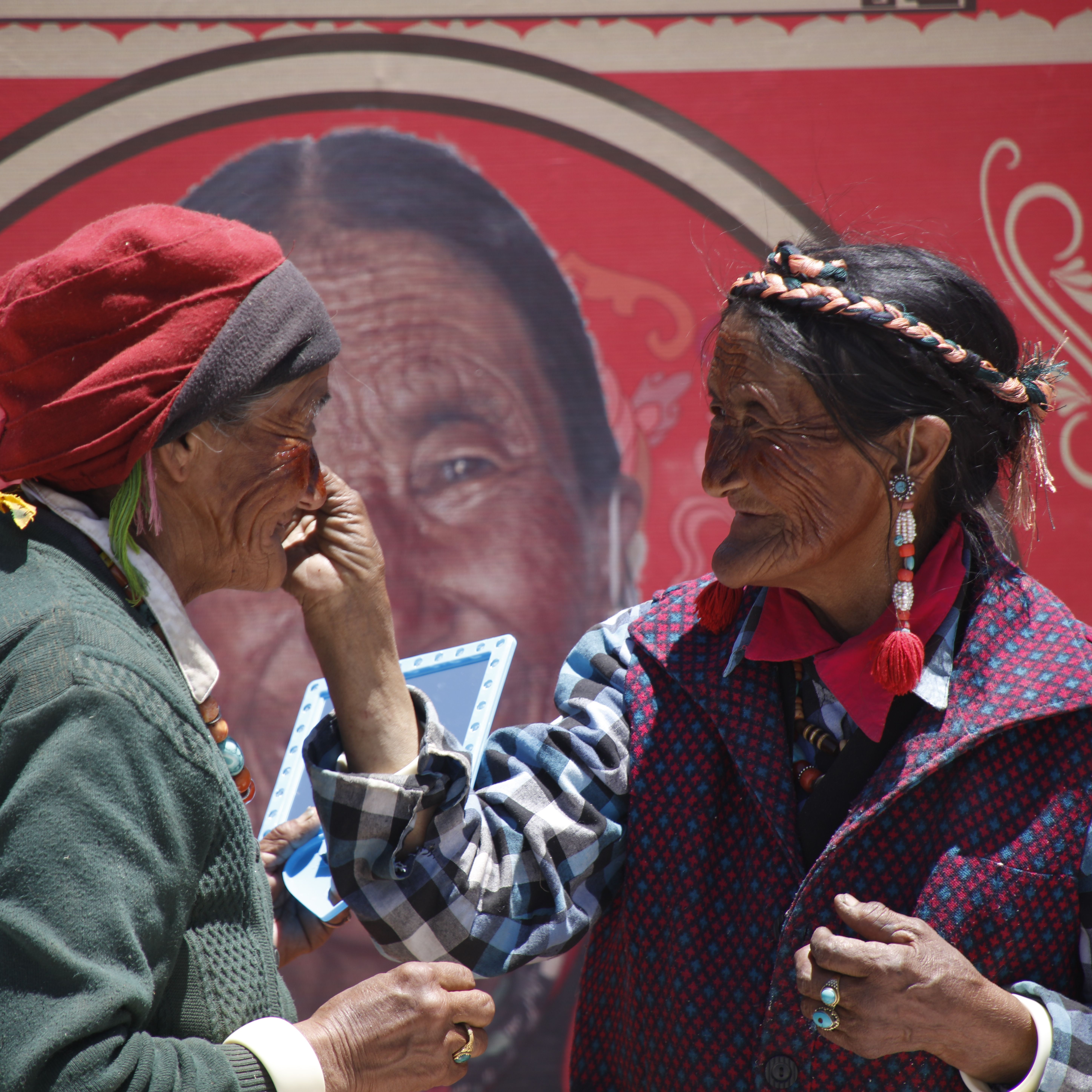 圖片說明:用札達面膜防曬的老奶奶們