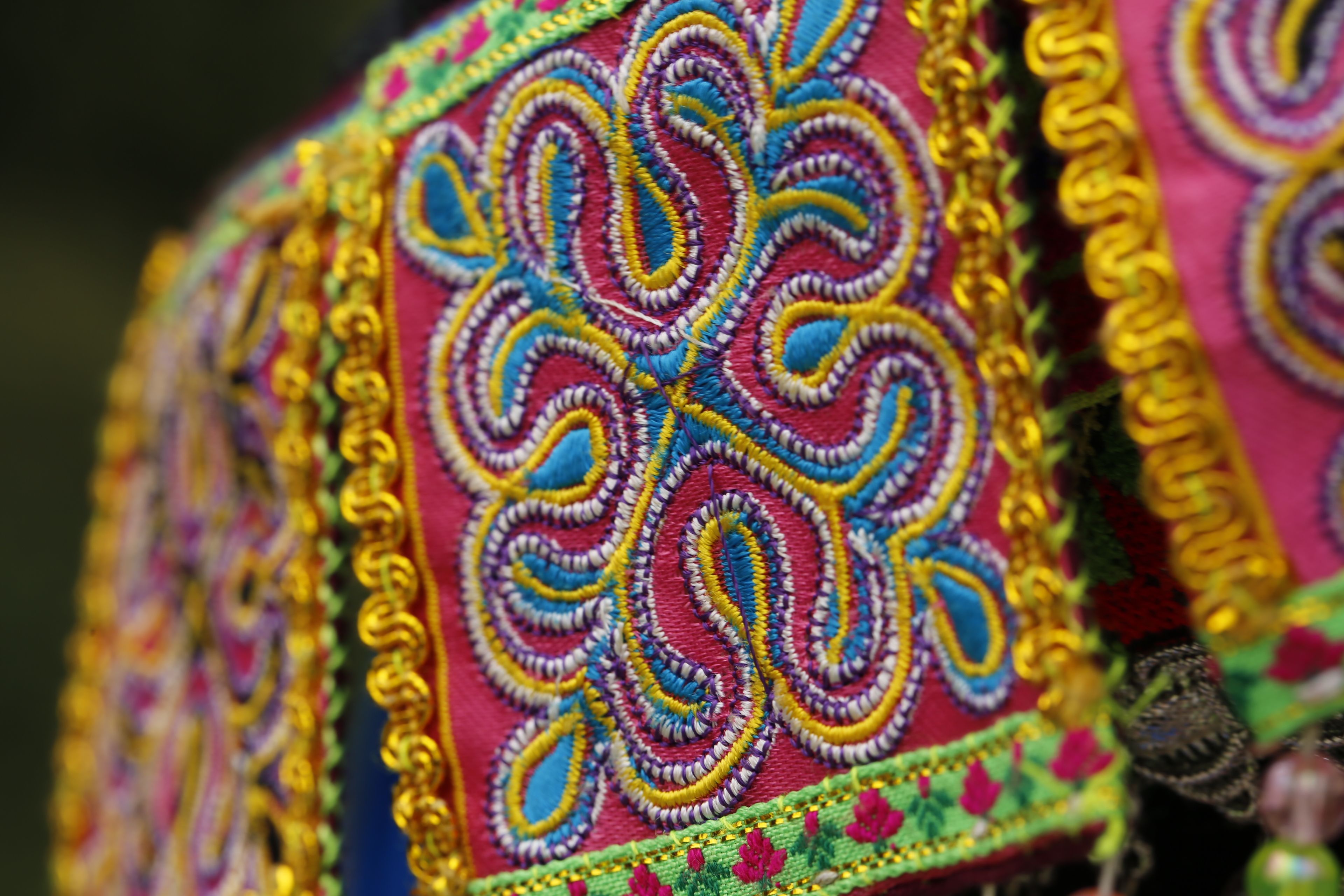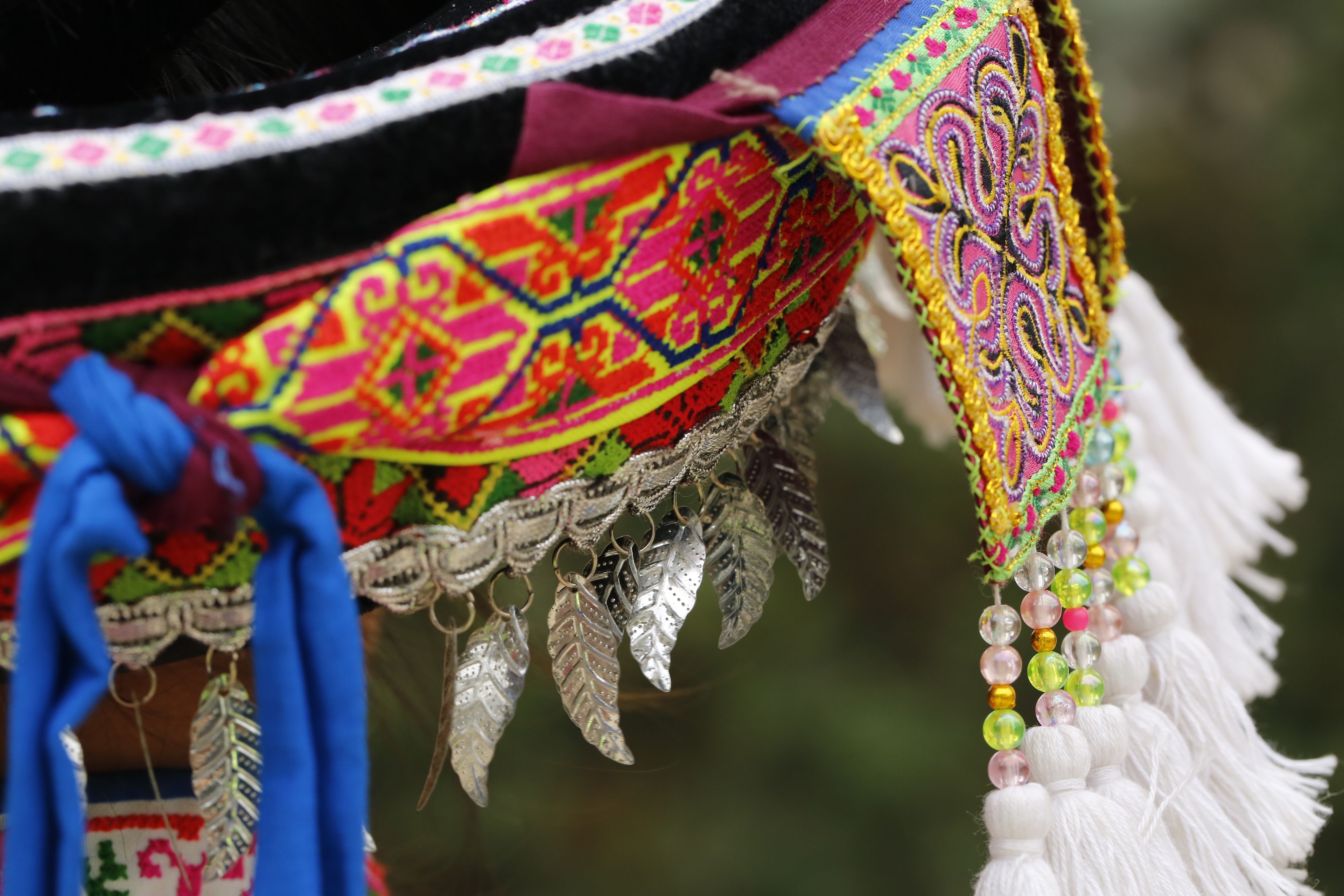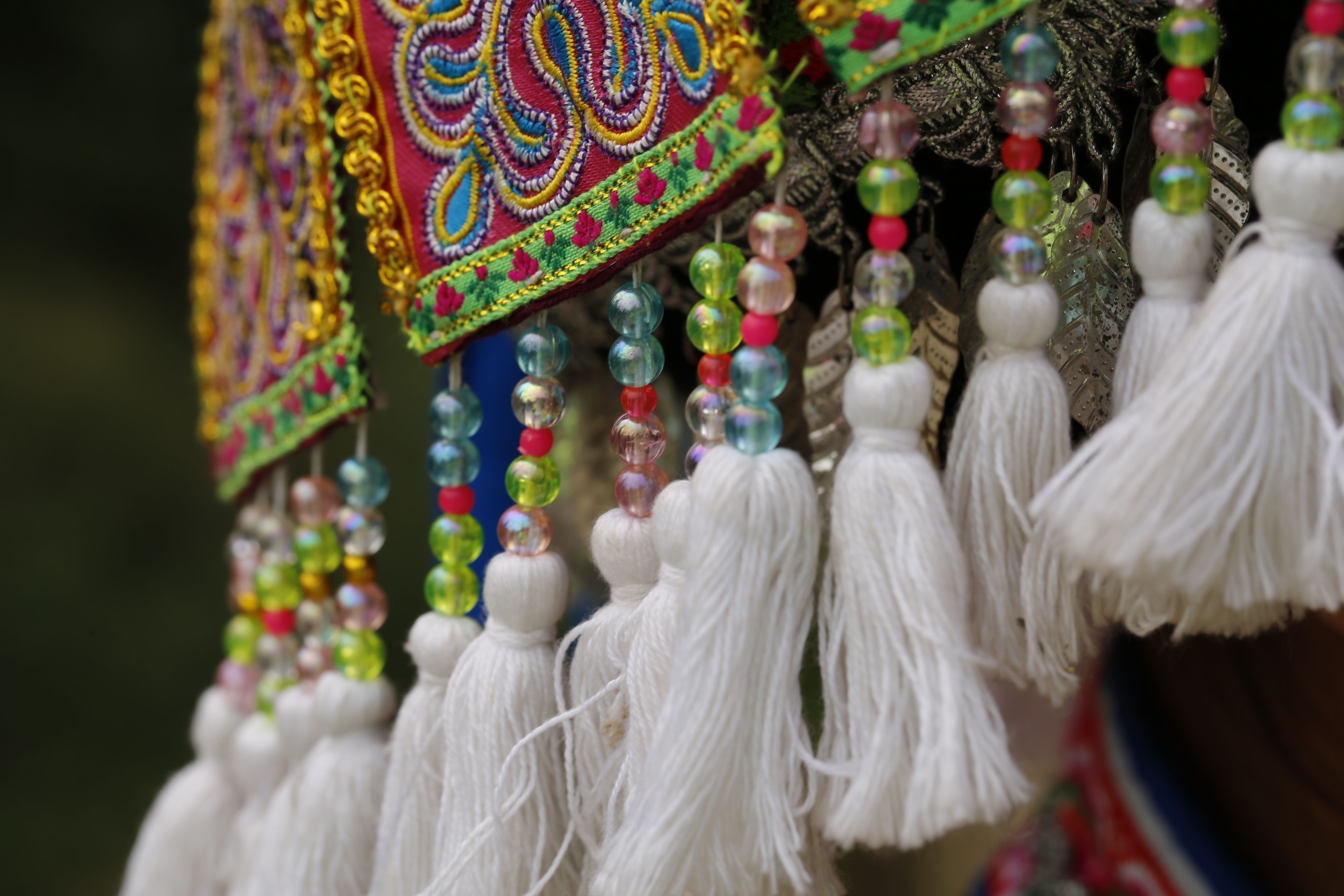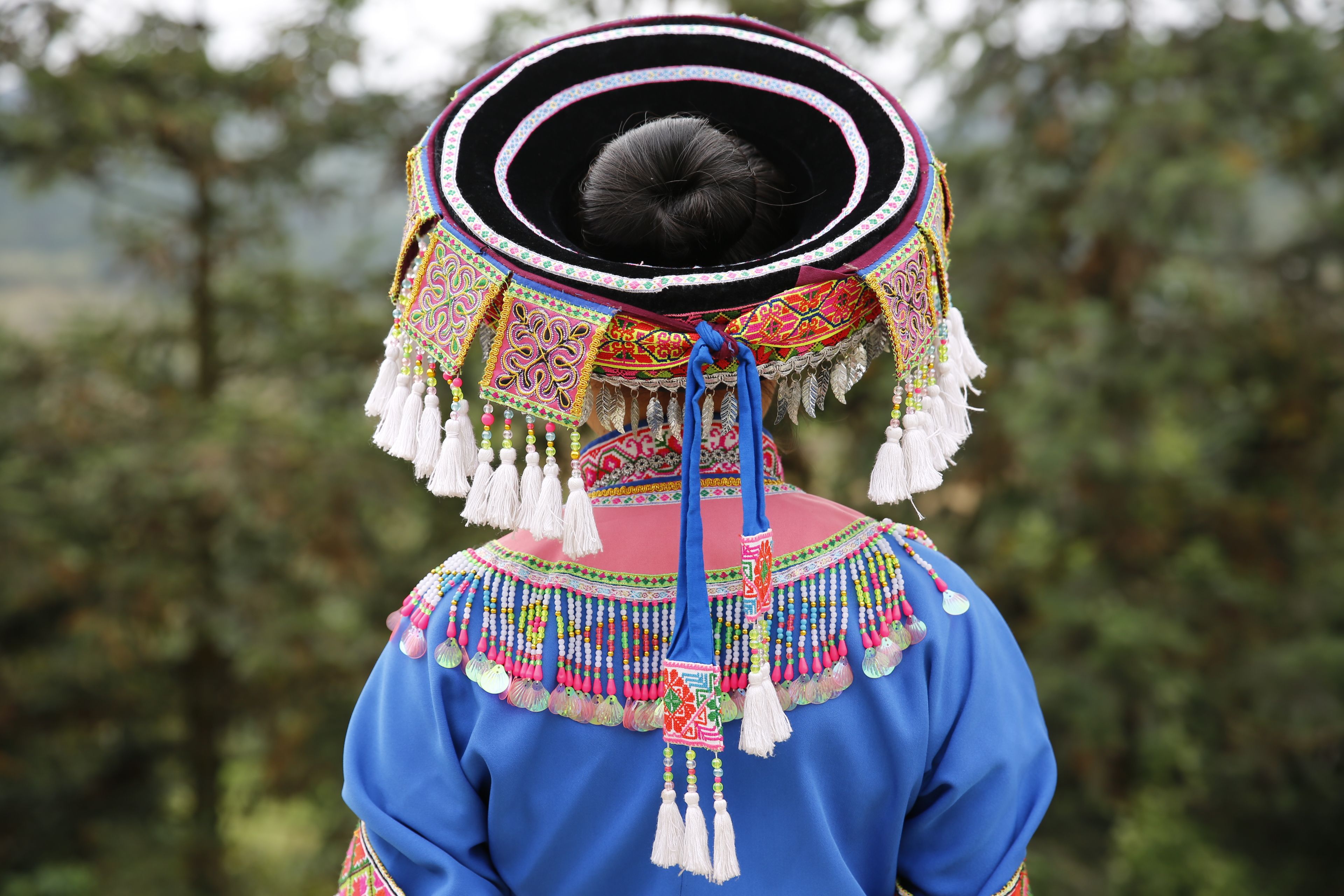圖片說明:貴州貴陽苗族女子服飾花帽